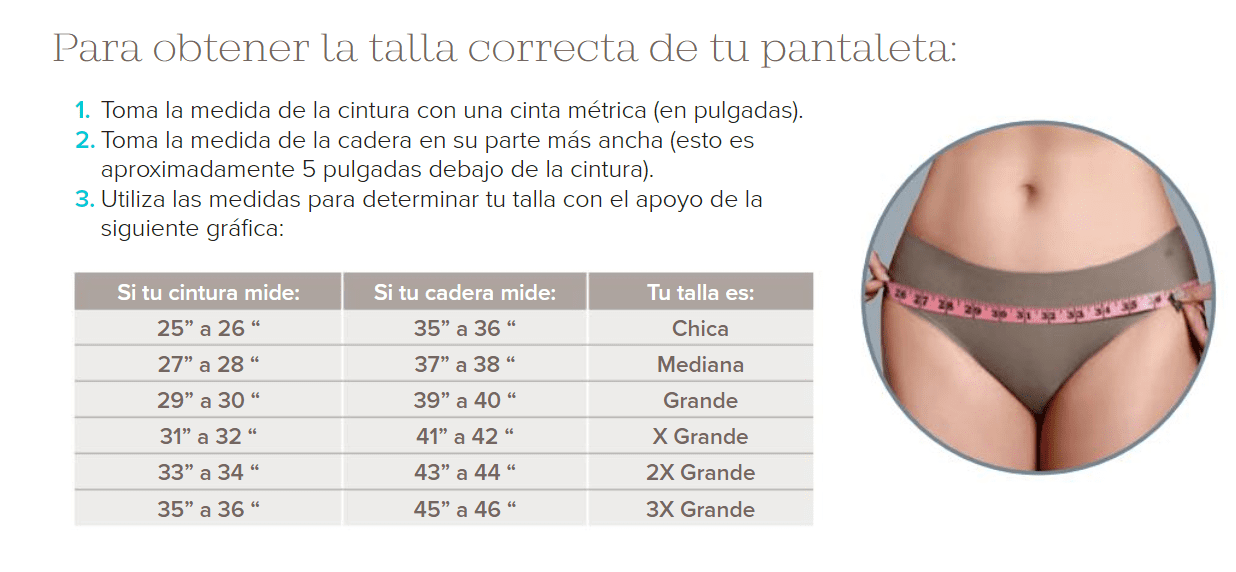Para una talla correcta y cómoda, coloca tus pies separados por 15 cm y mide la parte más saliente de tu cadera y tu cintura, no aprietes al medir, hazlo estando parada y completamente erguida. Revisa la guía de tallas para que compares tu medida y elijas la talla correcta.