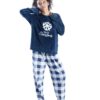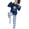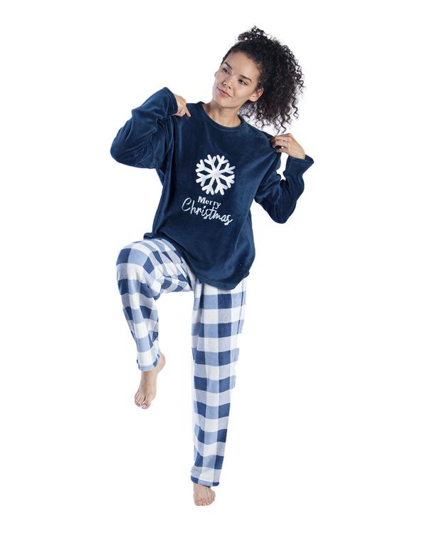 - Juego de Pijama ultra suave, sudadera con aplicación bordada de copo de nieve y pantalón de cuadros color azul